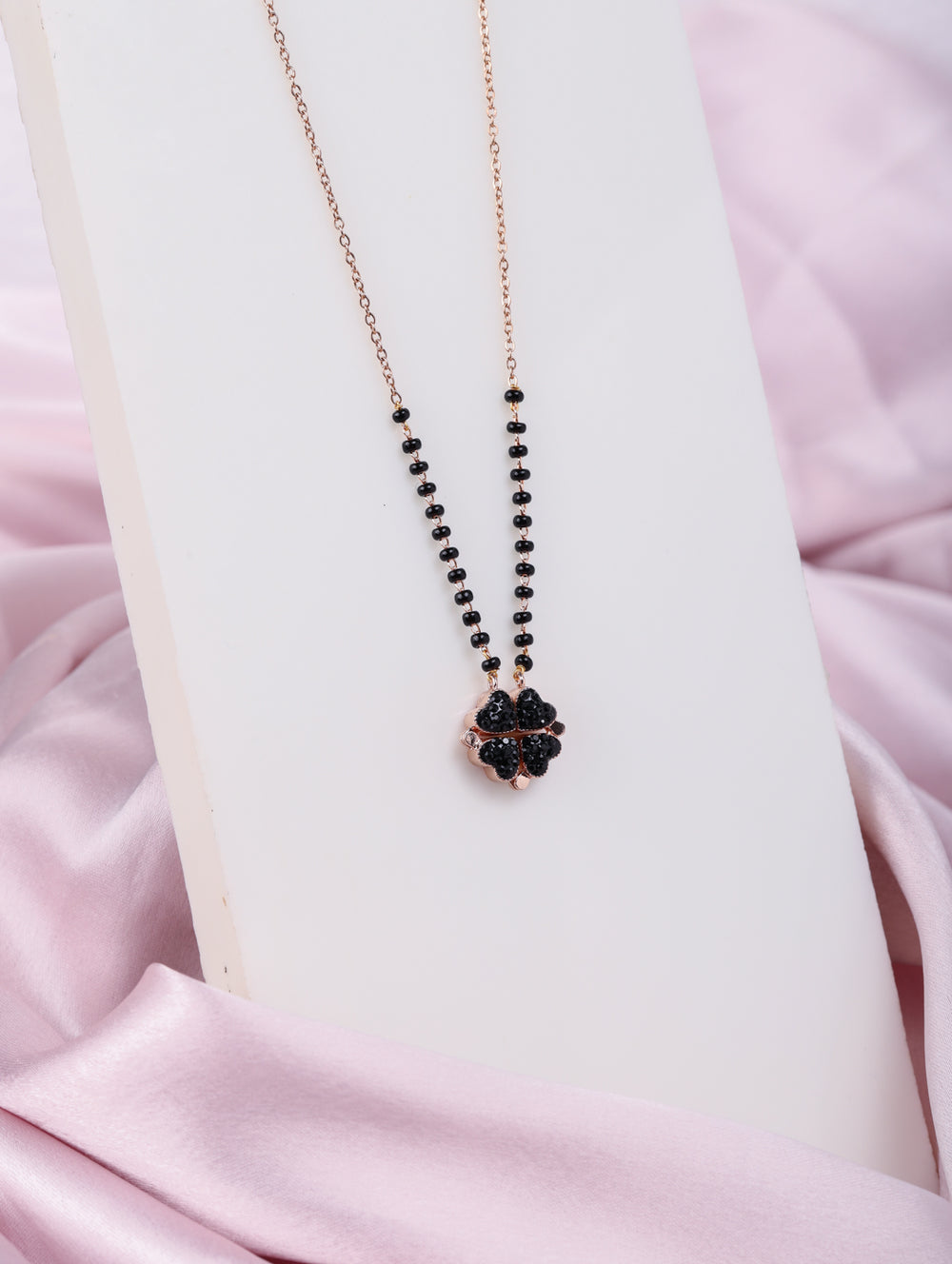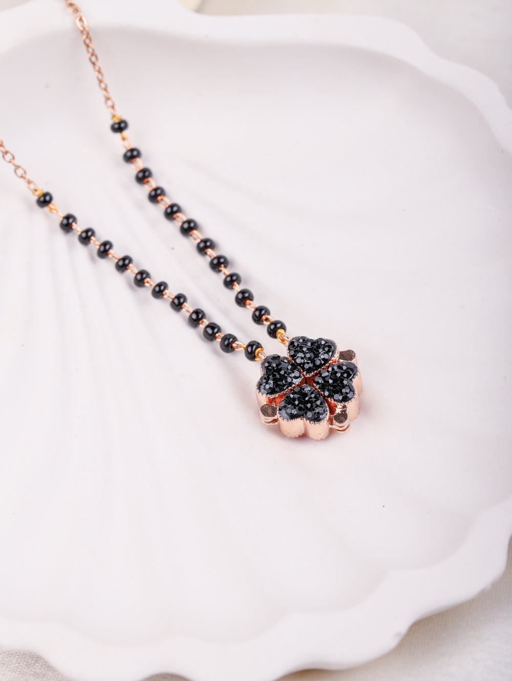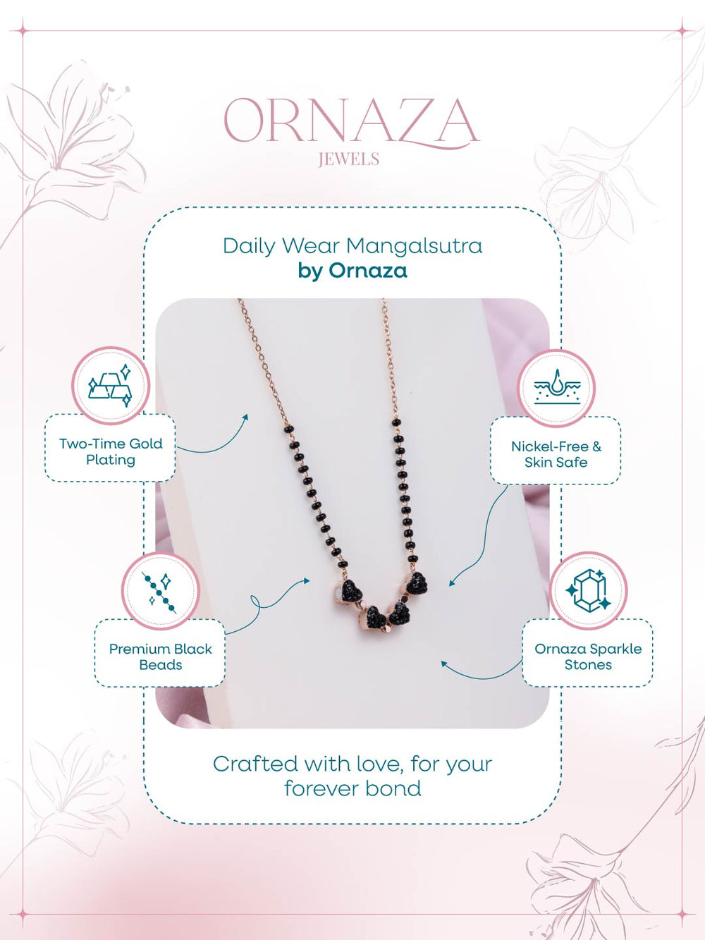 A bold and elegant design featuring five shimmering black heart motifs 🖤, symbolizing strength and eternal love. Paired with a delicate gold-plated chain and black beads, this mangalsutra is perfect for women who love making a chic statement with tradition ❤️.