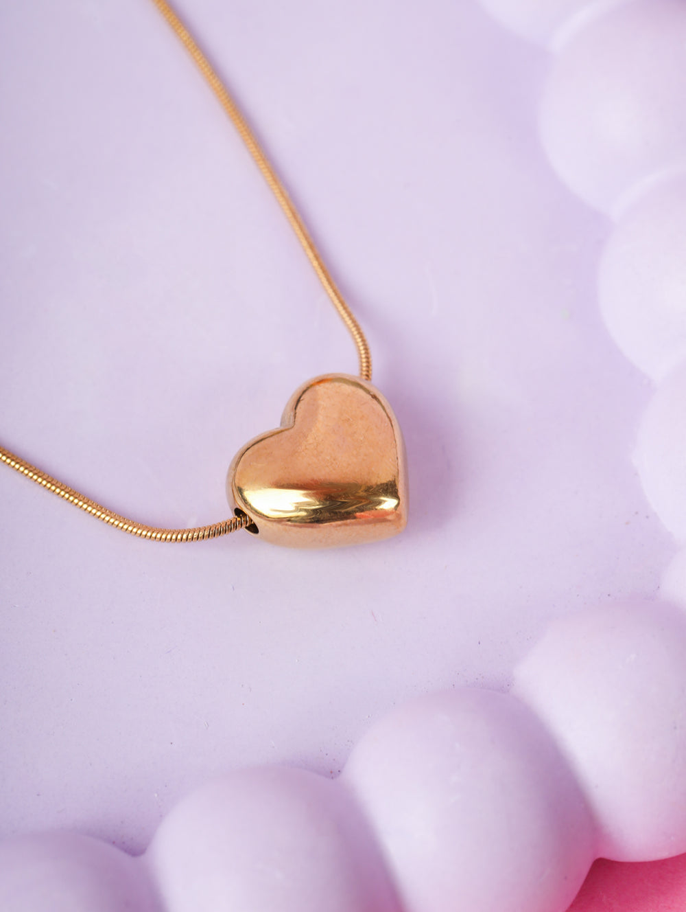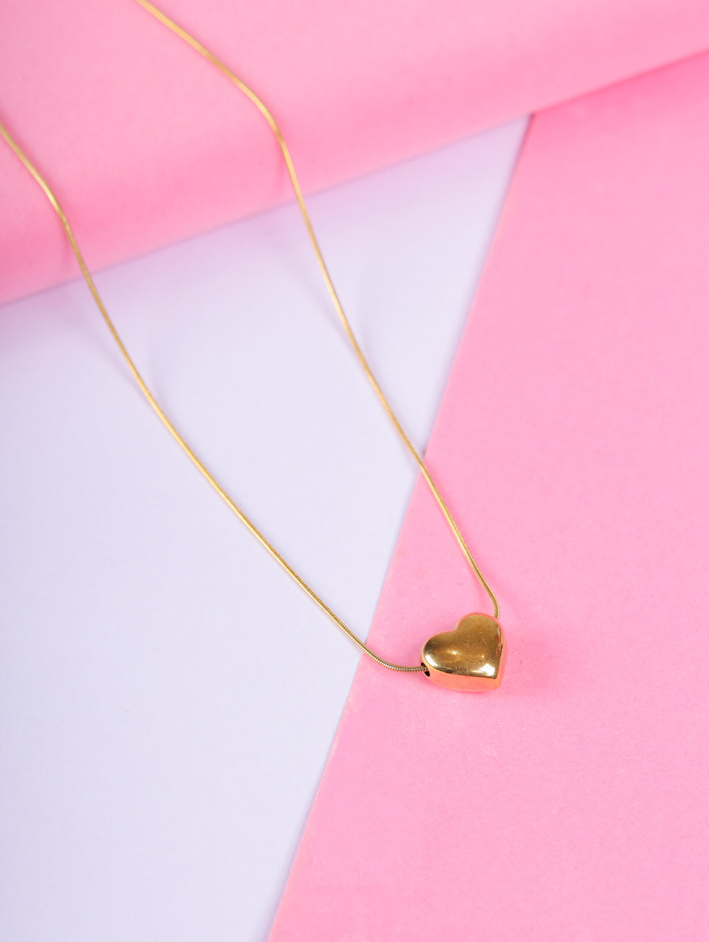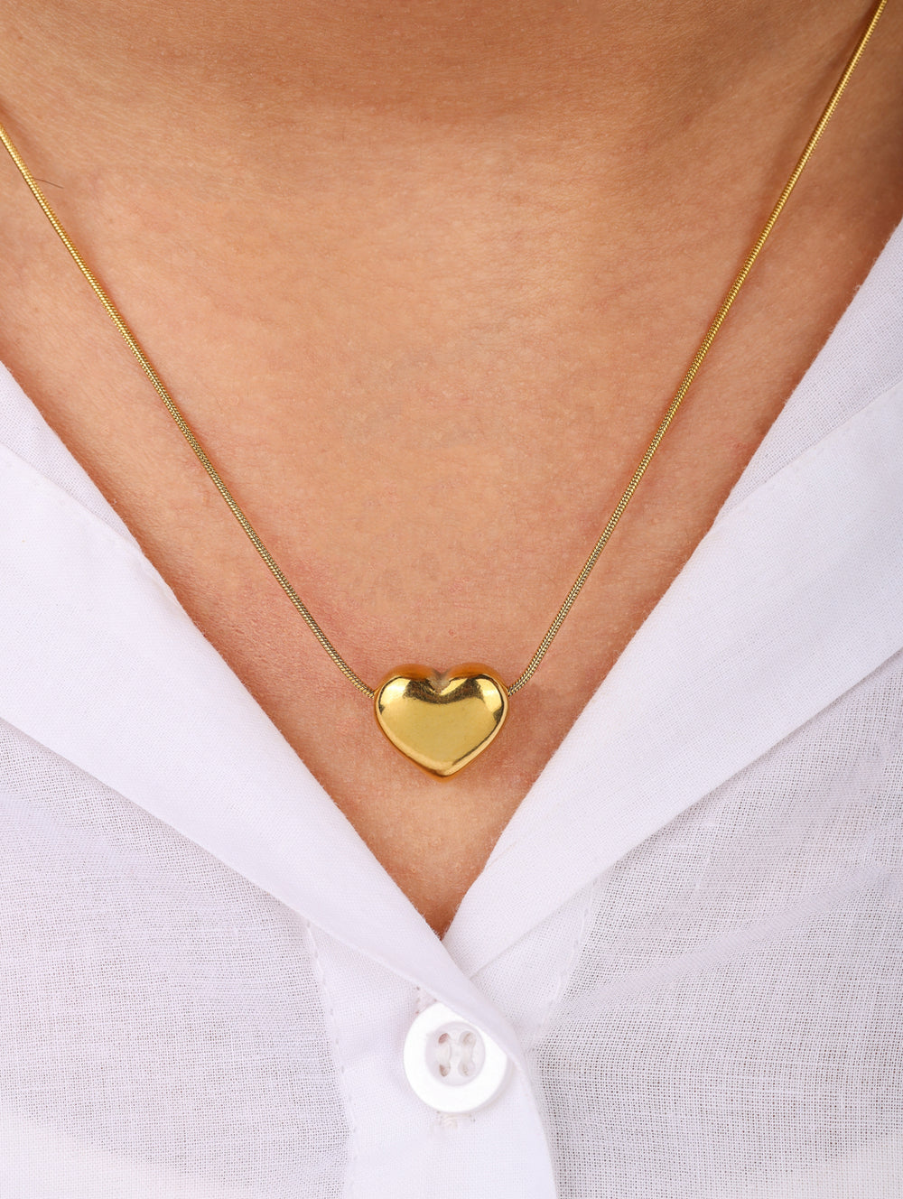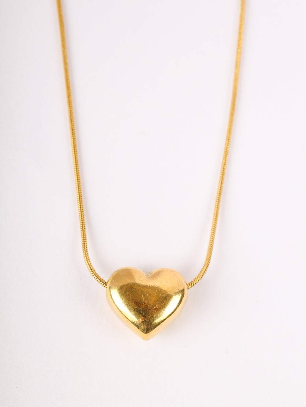 | Pendant: | Single bold heart motif in polished gold |