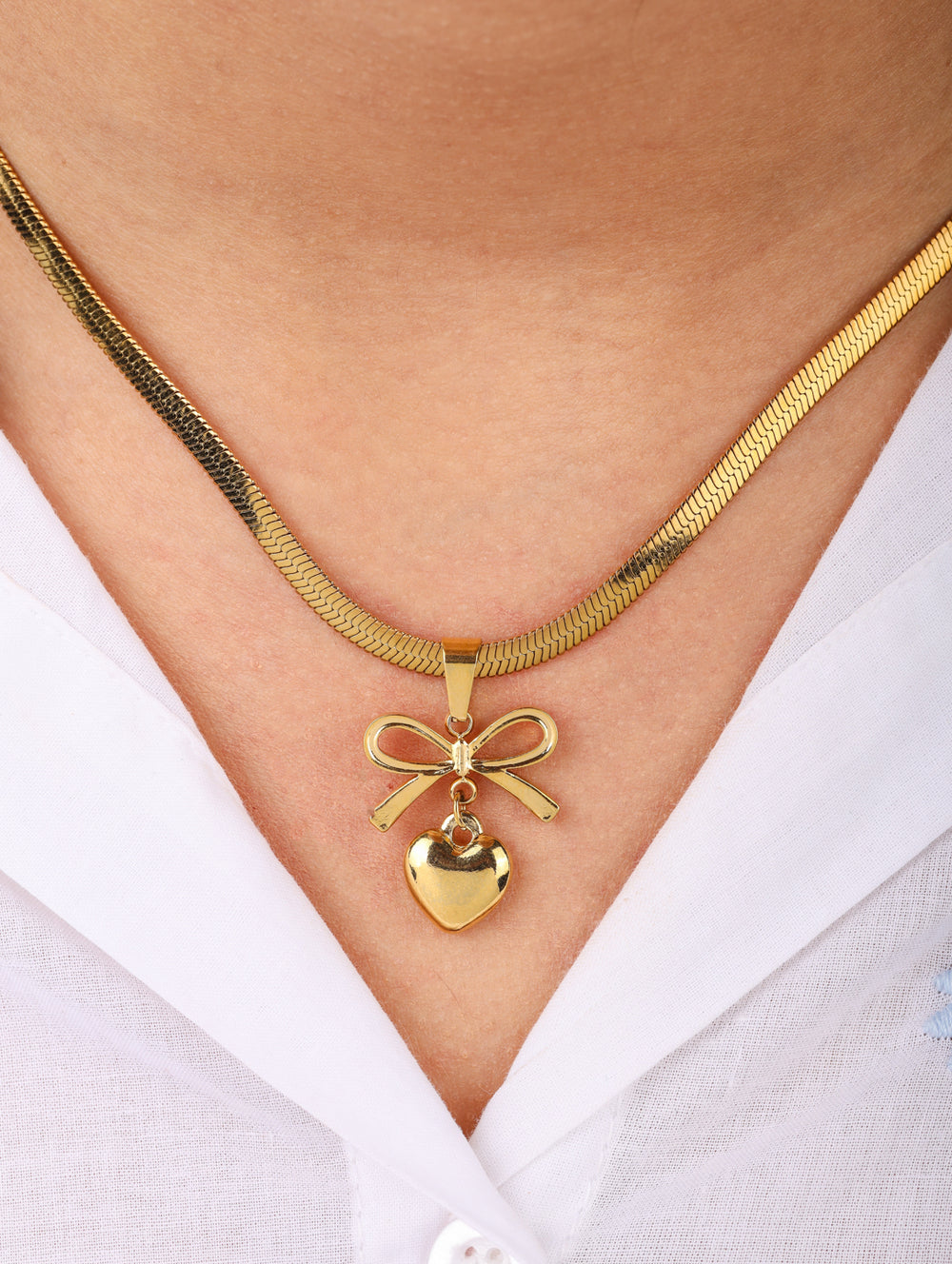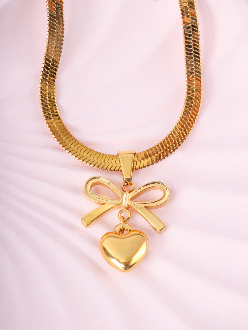 | Pendant: | Gold bow motif with dangling heart charm |