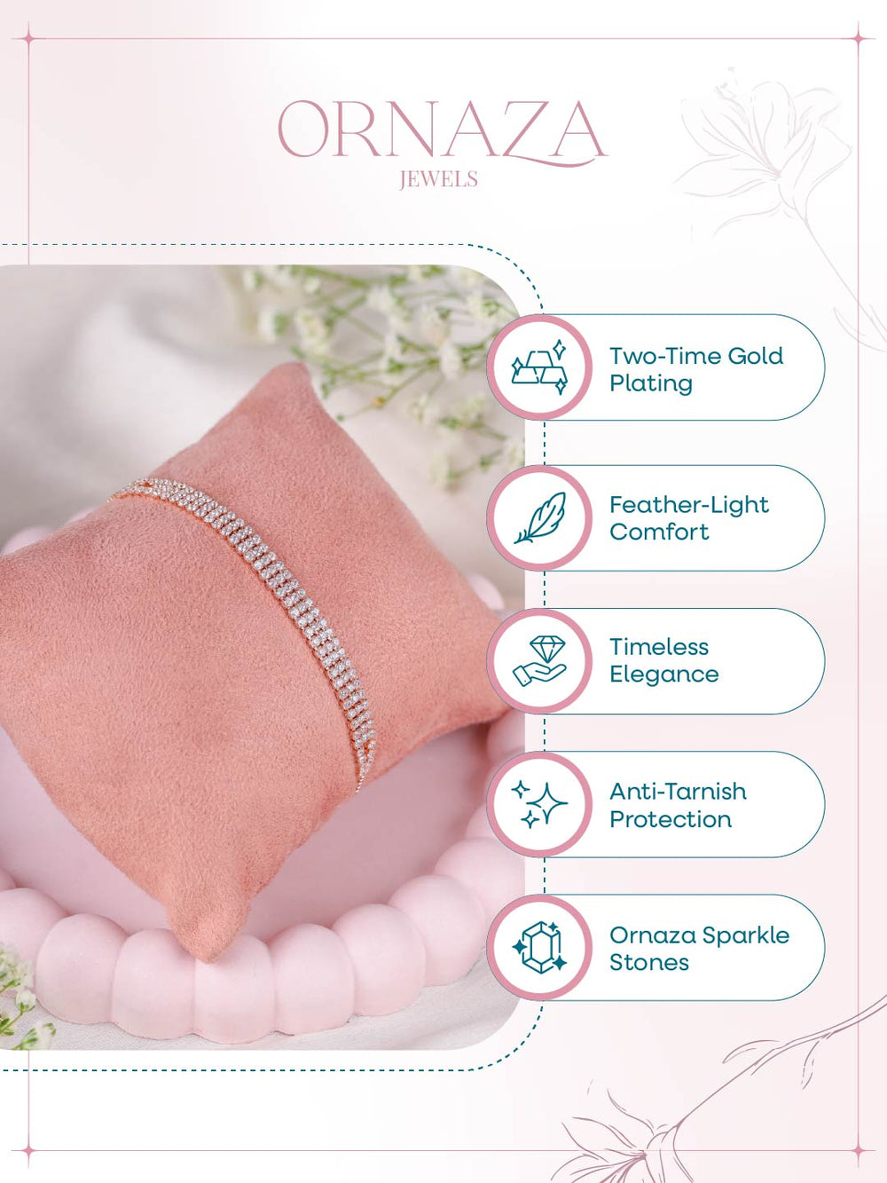 | Specification: | Premium CZ stones with durable rose gold plating |