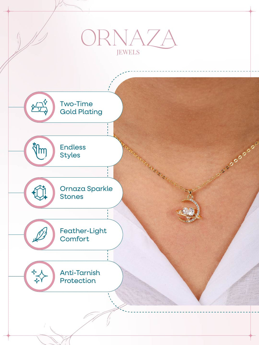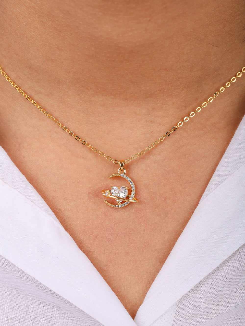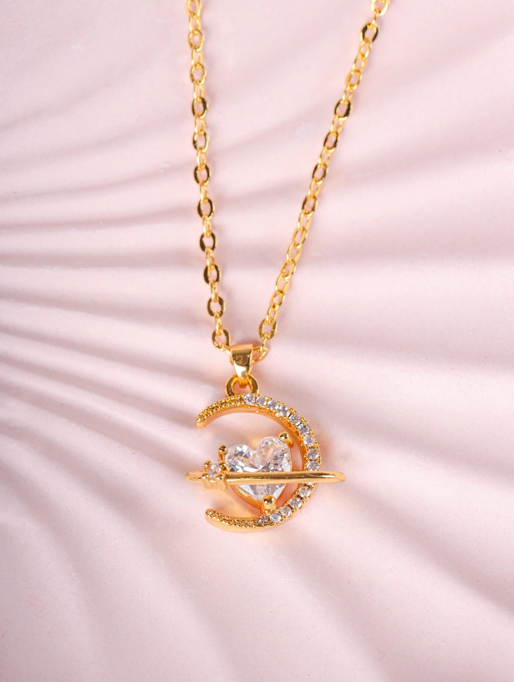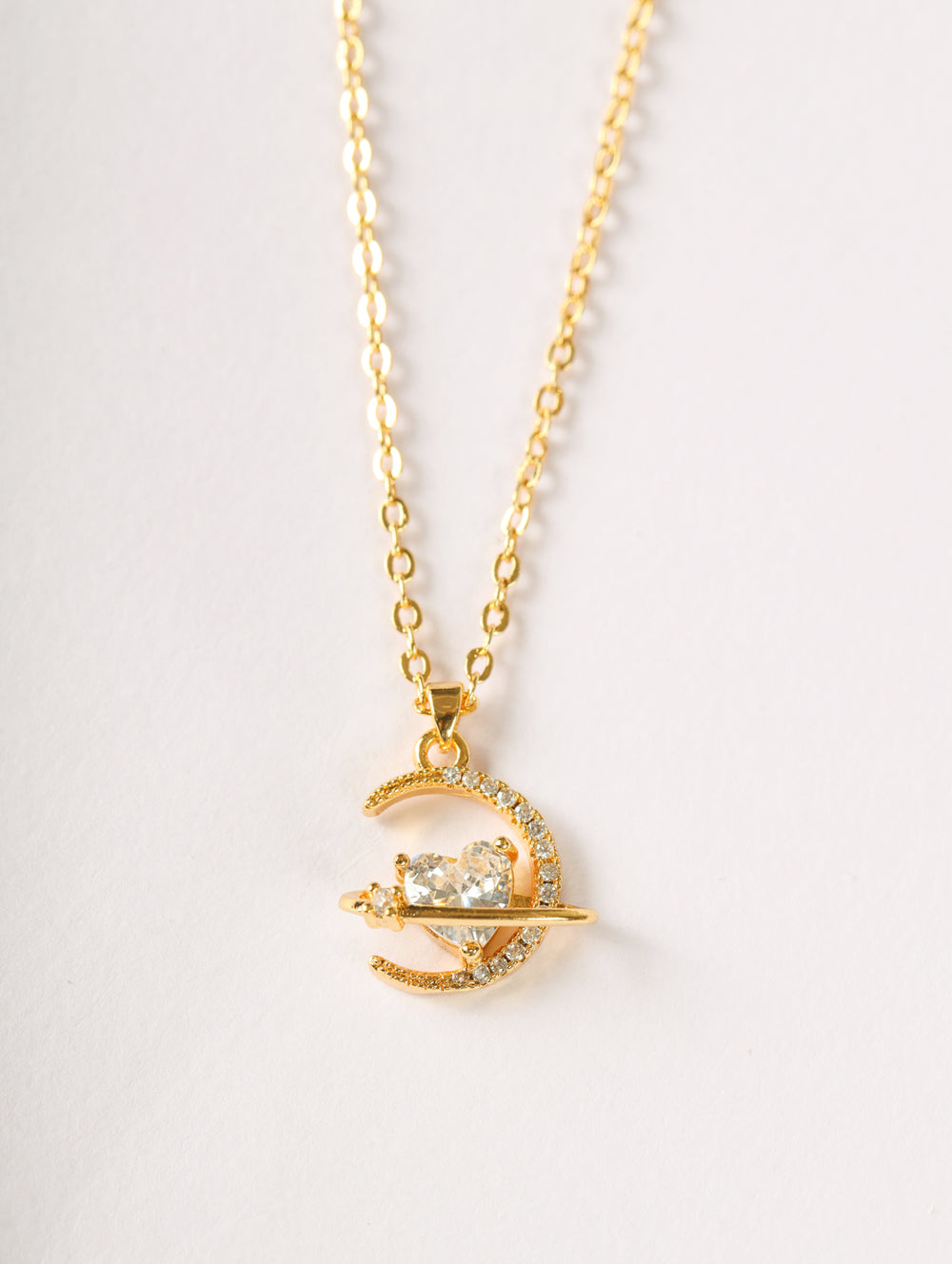 | Color: | Gold-plated chain with crystal crescent & heart |