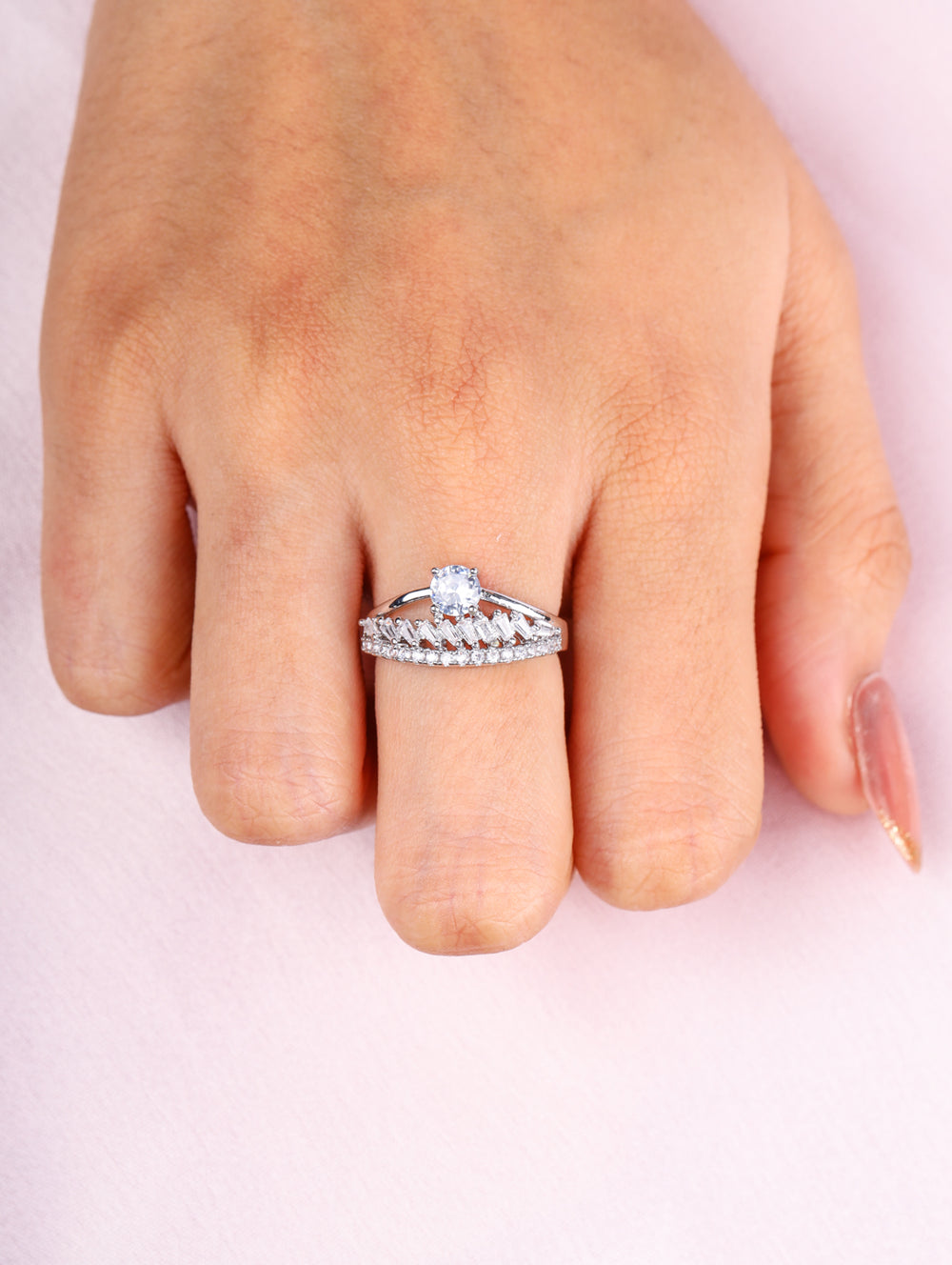 | Shine: | CZ solitaire with baguette stone brilliance |