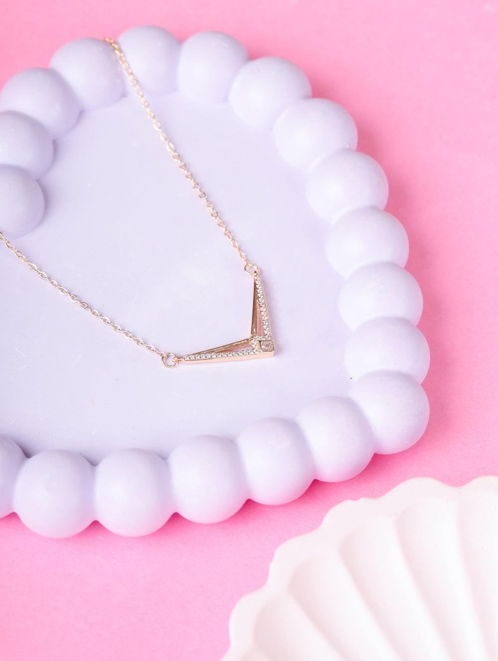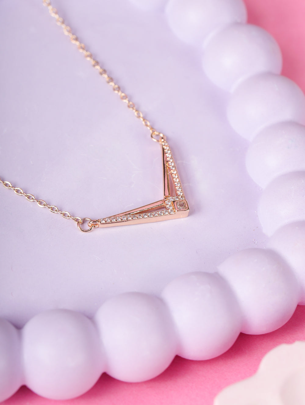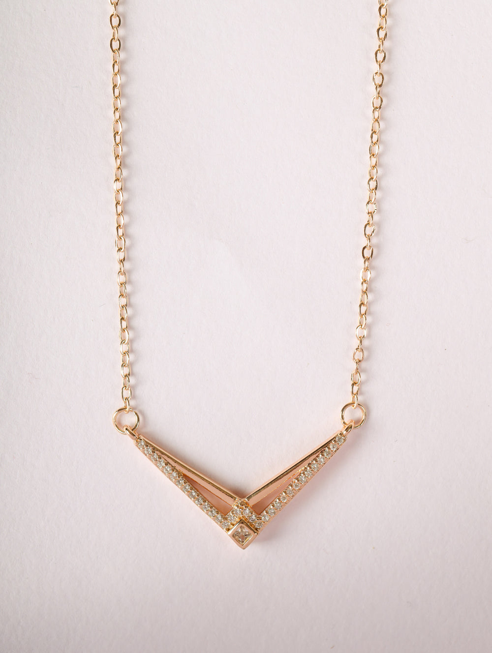 | Pendant: | V-shaped design with solitaire crystal centerpiece |