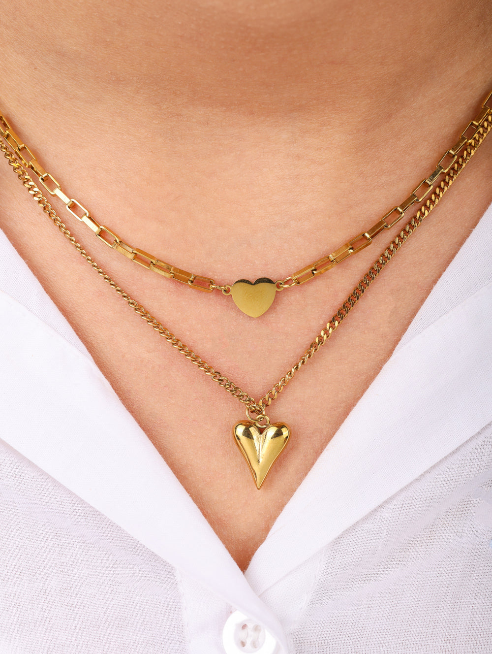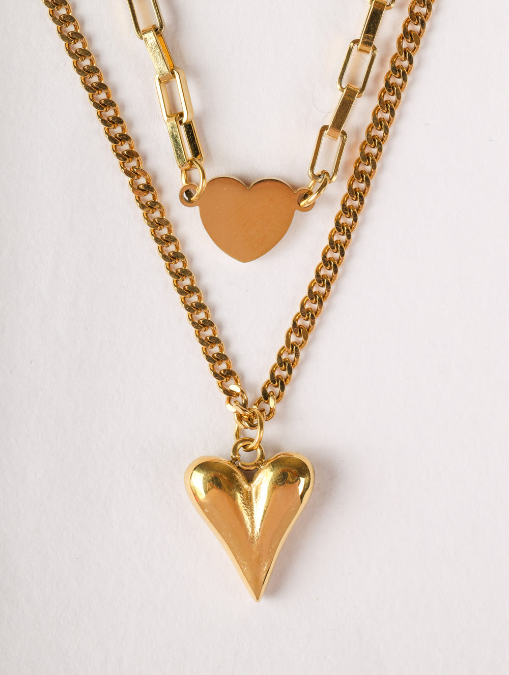 | Pendant: | Dual heart charms โ flat heart & bold pointed heart |