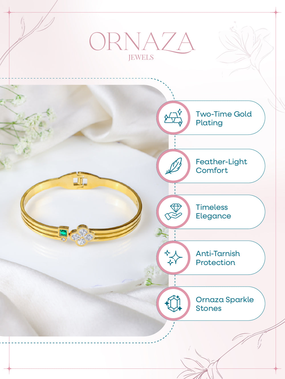 | Shine: | CZ stone embellishments with high-gloss two-time gold plating |