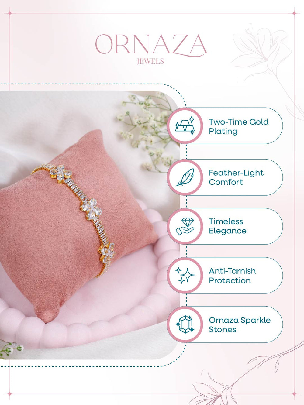 | Design: | Floral motifs with shimmering baguette-cut accents |