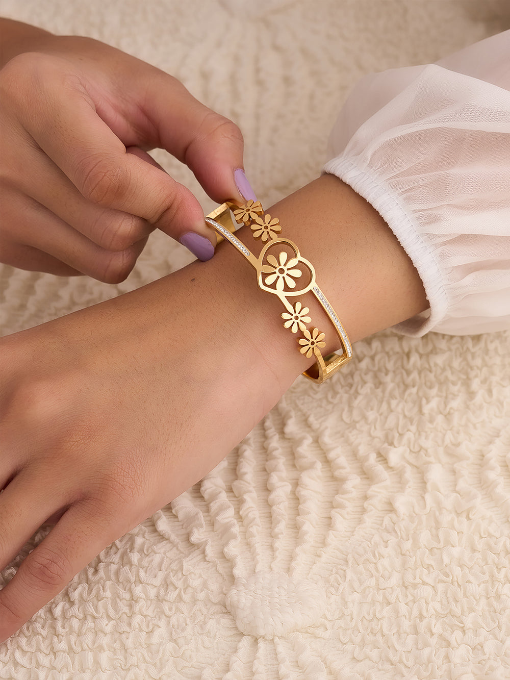 | Specification: | Floral motif bracelet with heart accent and open-style form |