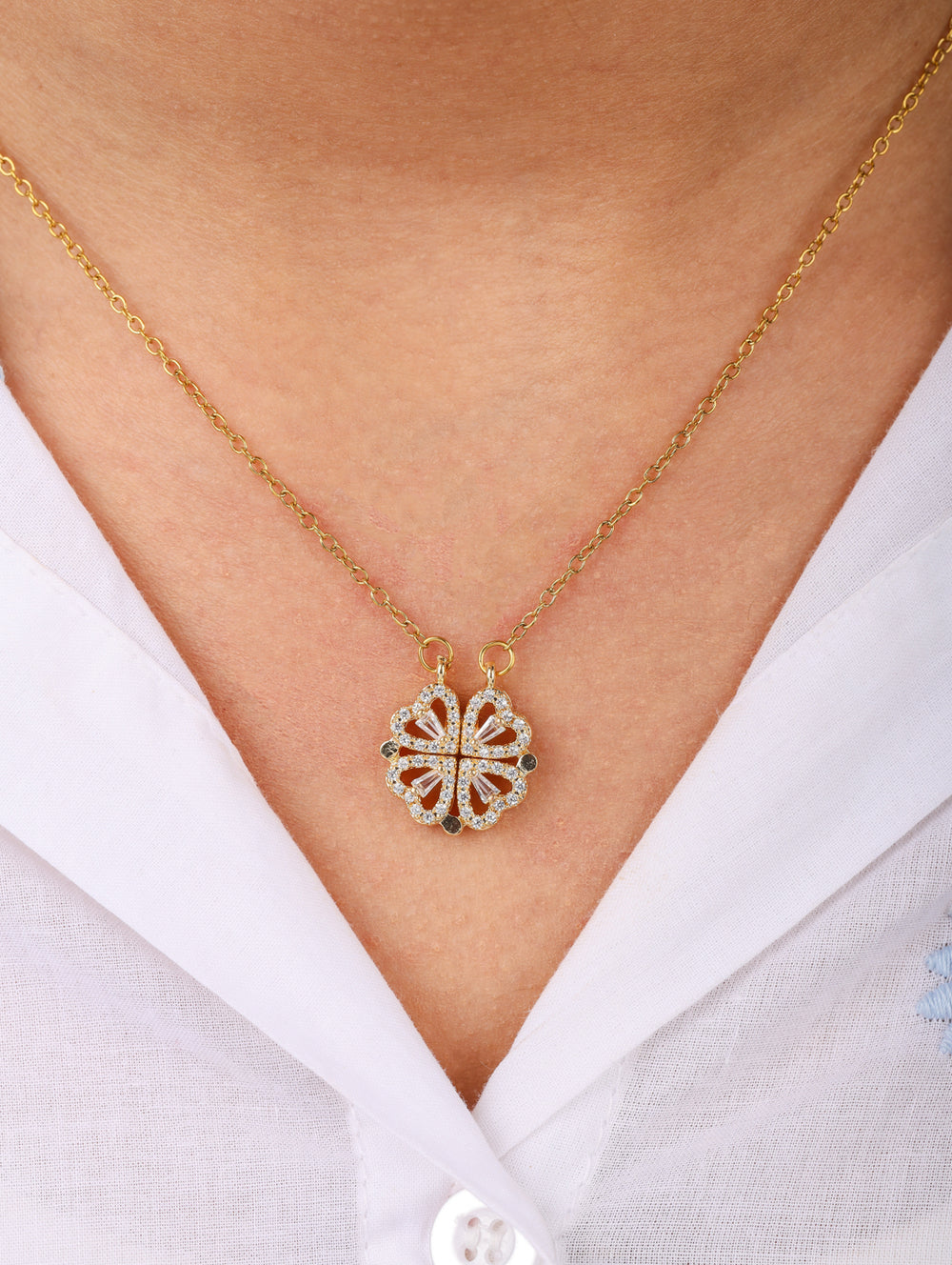 | Pendant: | Linked open-heart motifs studded with crystals |