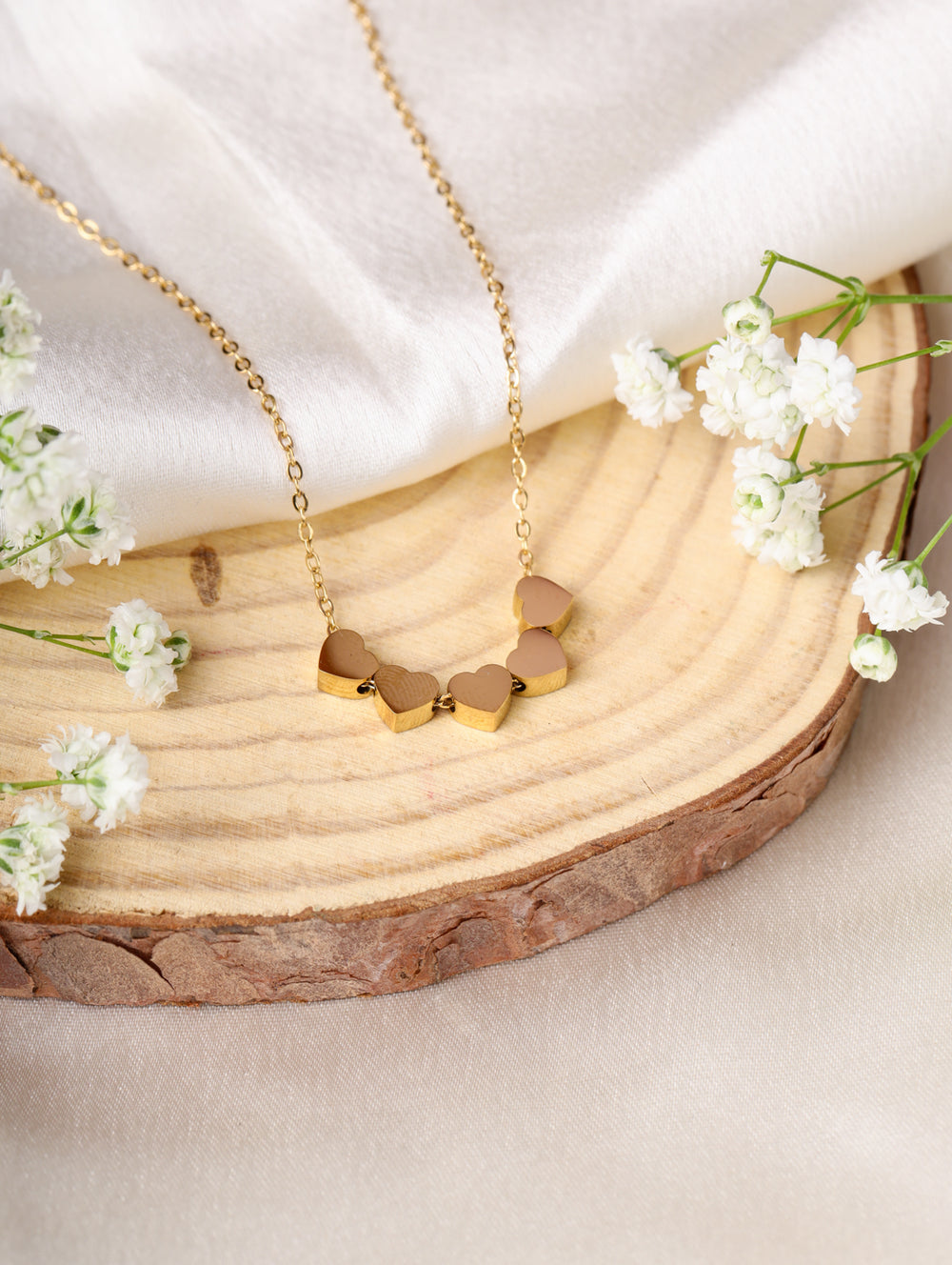 | Pendant: | Five linked heart motifs in gold |