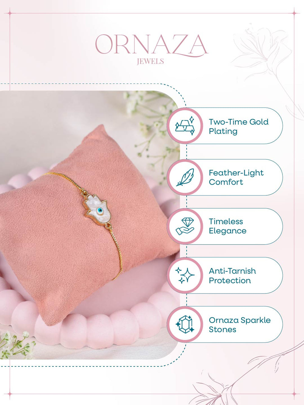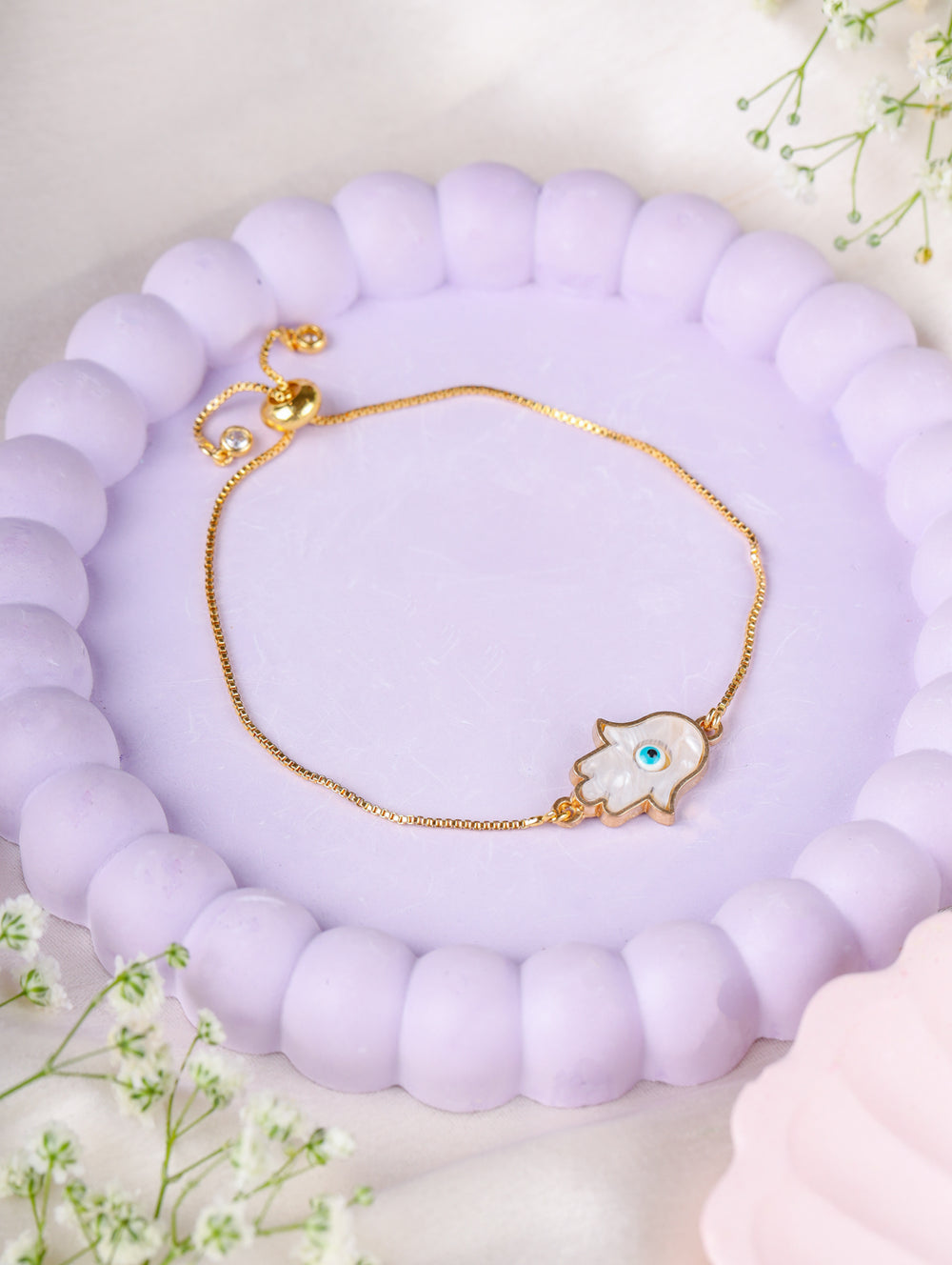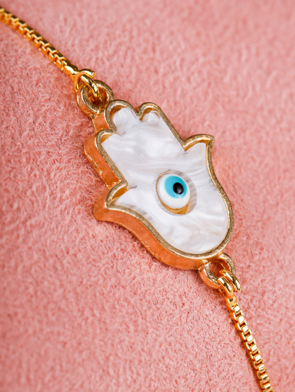 | Charm: | Hamsa hand with embedded blue evil eye |