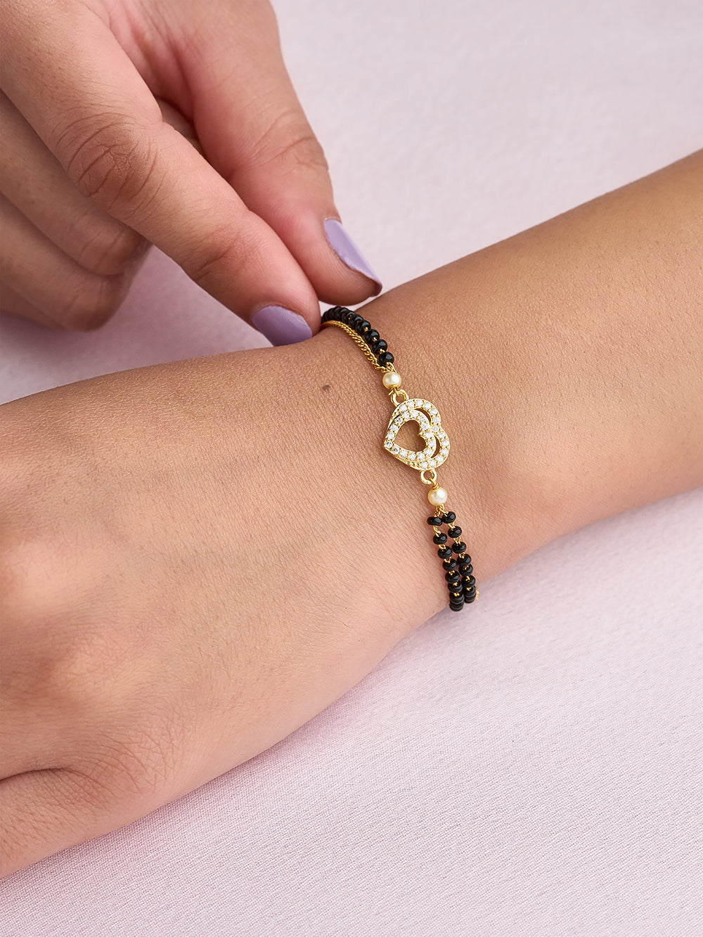 | Specification: | Mangalsutra-inspired bracelet with elegant double-bead strands |
