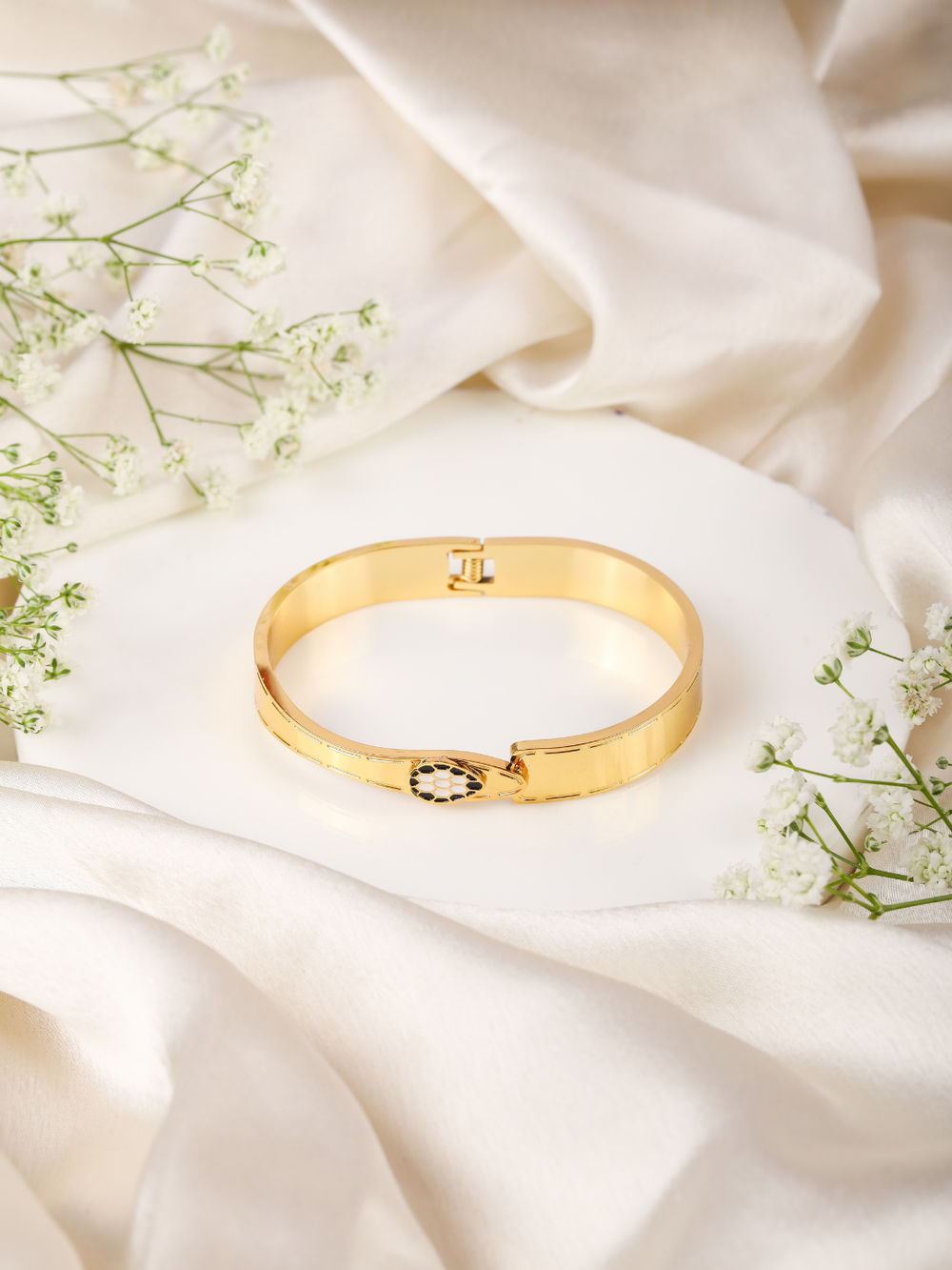 | Color: | Gold-plated bracelet with black & white enamel lotus drop design |