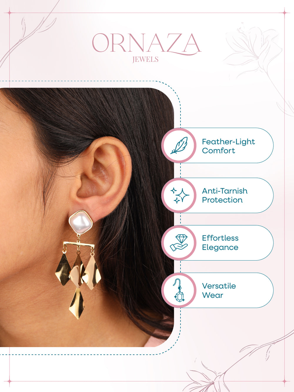| Color: | Gold-plated with pearl stud & golden danglers |