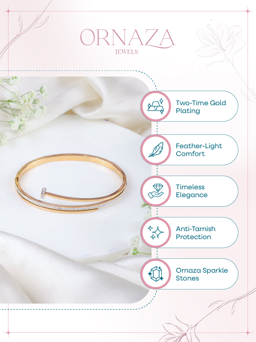 | Specification: | Nail-inspired bracelet design with sleek rose finish & stone detailing |