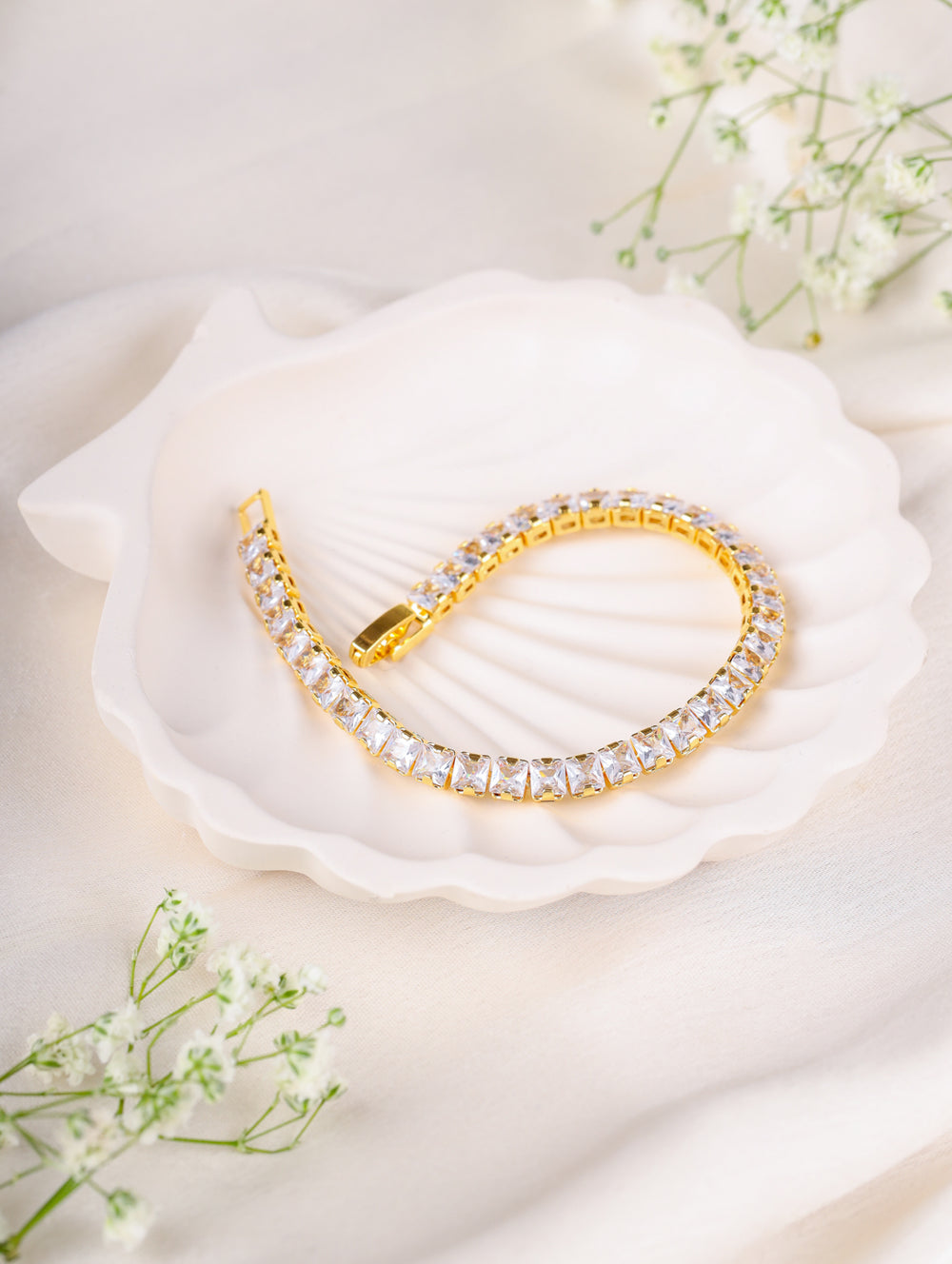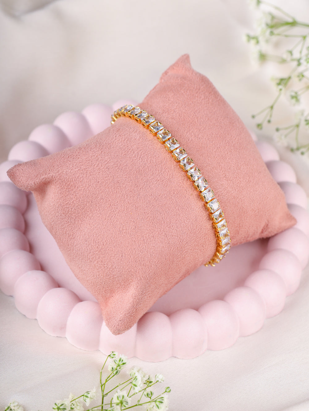 | Design: | Classic tennis bracelet with square-cut detailing |