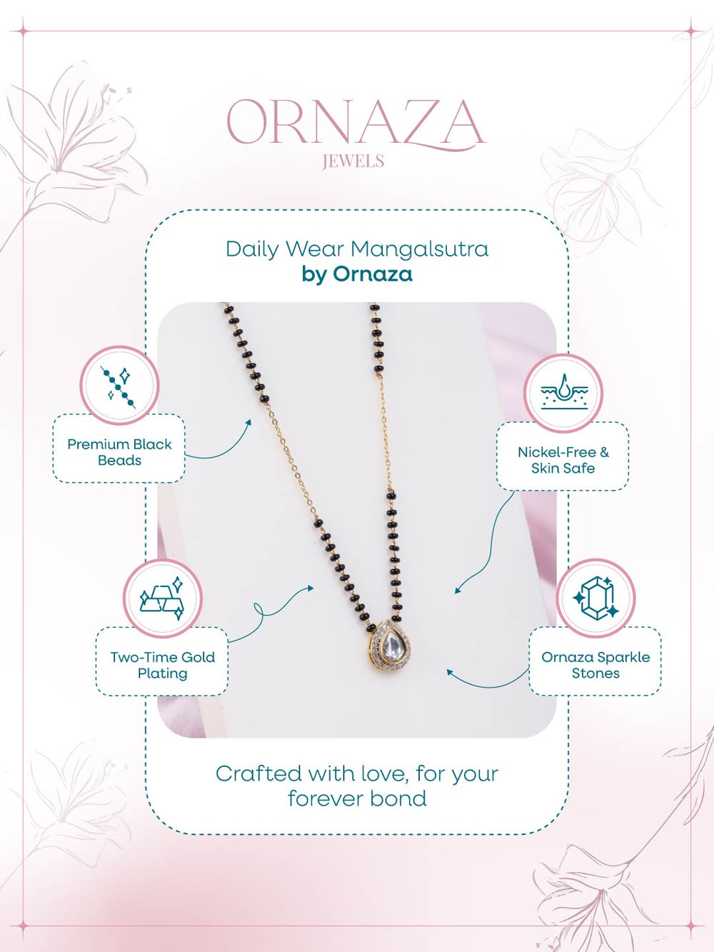 A graceful teardrop pendant featuring a sparkling CZ centerpiece 💎 framed by a halo of stones. Crafted in fine gold plating with a black-bead chain, this piece reflects elegance, purity, and everlasting love ❤️.