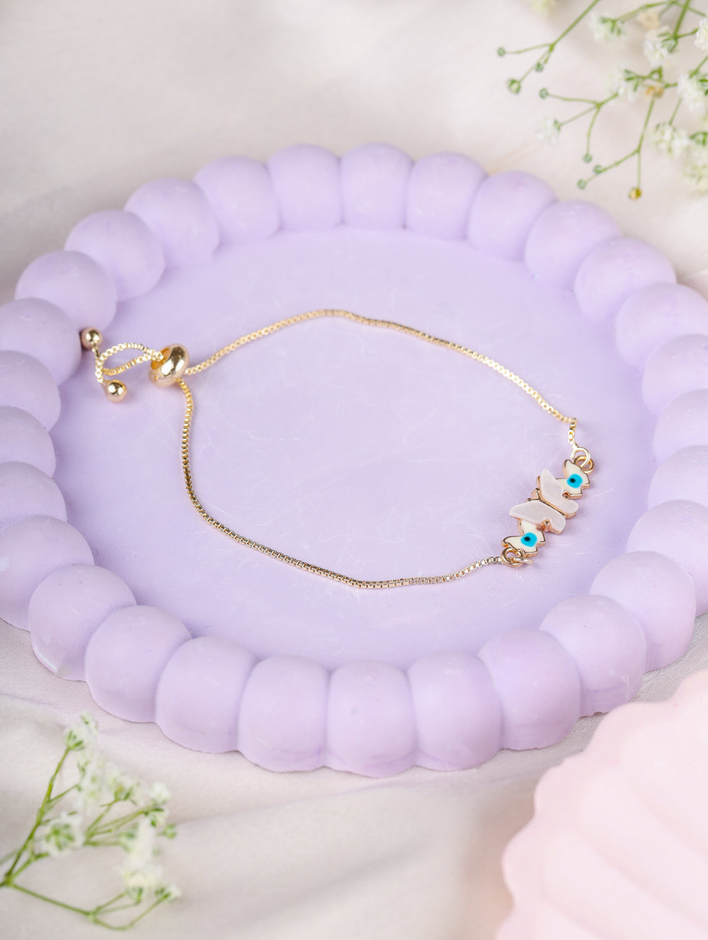 | Charm: | Twin butterfly motif with blue evil eye detail |